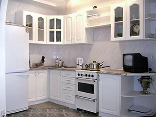 This newly remodeled 2 room apartment uses blue pastel colors to set a tranquil mood for your stay in Sumy. Plush carpeting, comfortable new furniture and rich hues of ceramic tile in the kitchen are comforting and enjoyable extras to this setting. The bedroom features a king size bed, always a plus. Entry is via a coded metal security door.